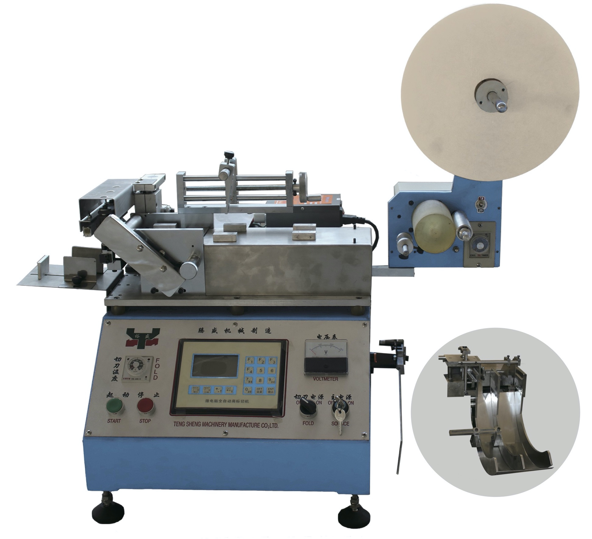 The machine is suitable for cutting of all types printed/Woven Label, It has Hot and cold option, Also Cold cut with stacked option too. This machine is smart and easy control. Max cutting speed is about 2000 Dozens per hour, Accurate cutting size, Clear eye sensor scanning, stable performance on cutting. Material Availability: Satin, Cotton, Nylon, Paper, Woven.
